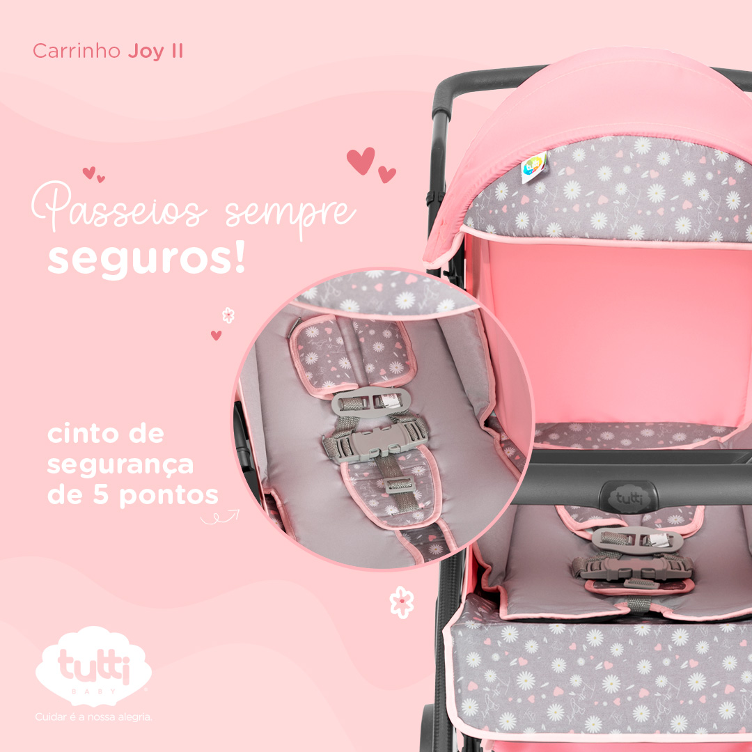 - Cinto de segurança: Na hora de levar a criança para passear, o cinto de segurança do carrinho de bebê é um item muito importante para proteger as nossas maiores jóias! Os modelos com cinto de segurança com 5 pontas, mantém a criança fixada na altura dos ombros, quadris e também entre as pernas. Dessa forma, é pssível firmar o quadril e os ombros do bebê, prevenindo que a criança fique exposta a qualquer tipo de risco!