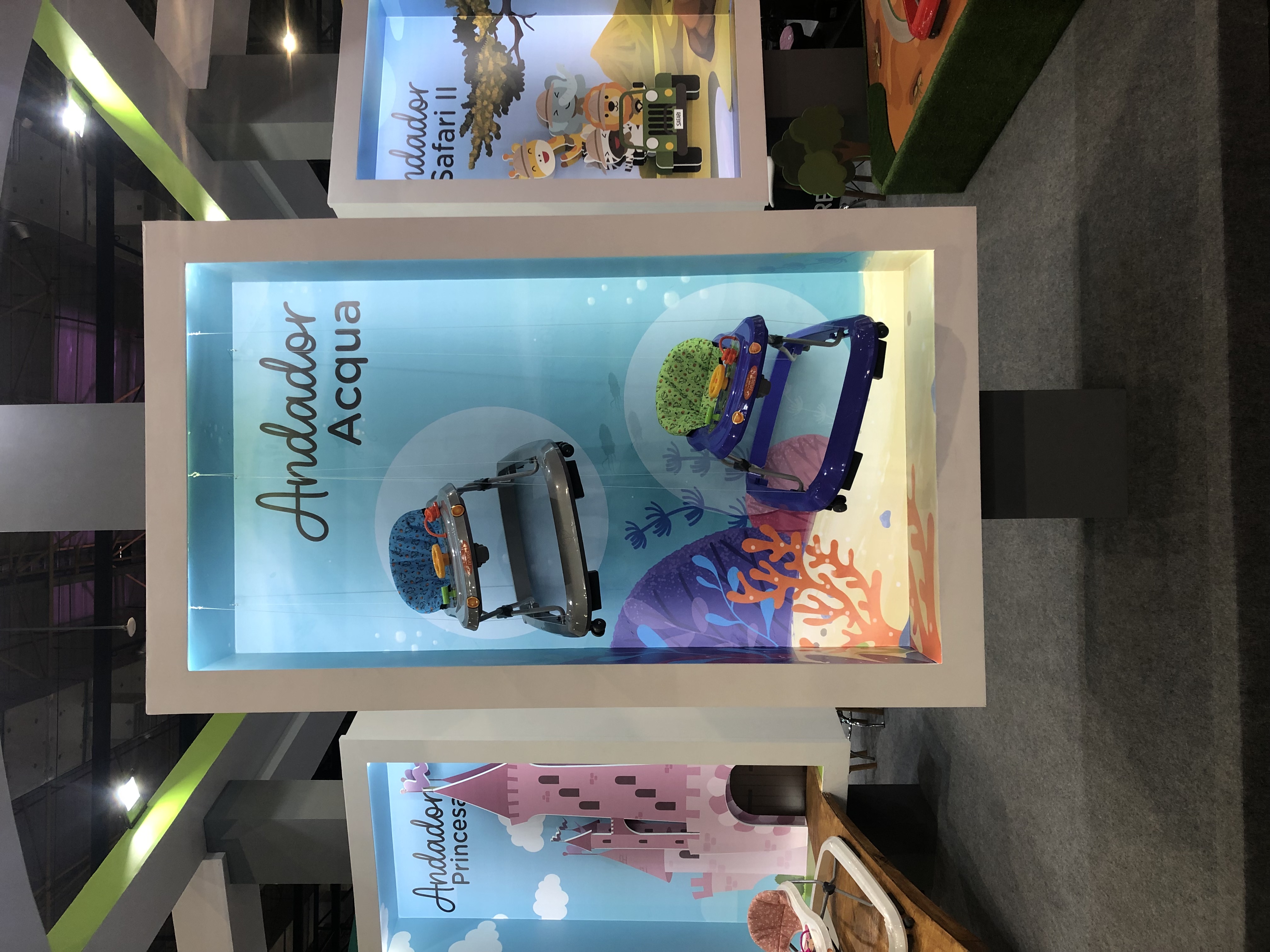 A atração principal do estande foram as vitrines interativas para divulgar os novos andadores.