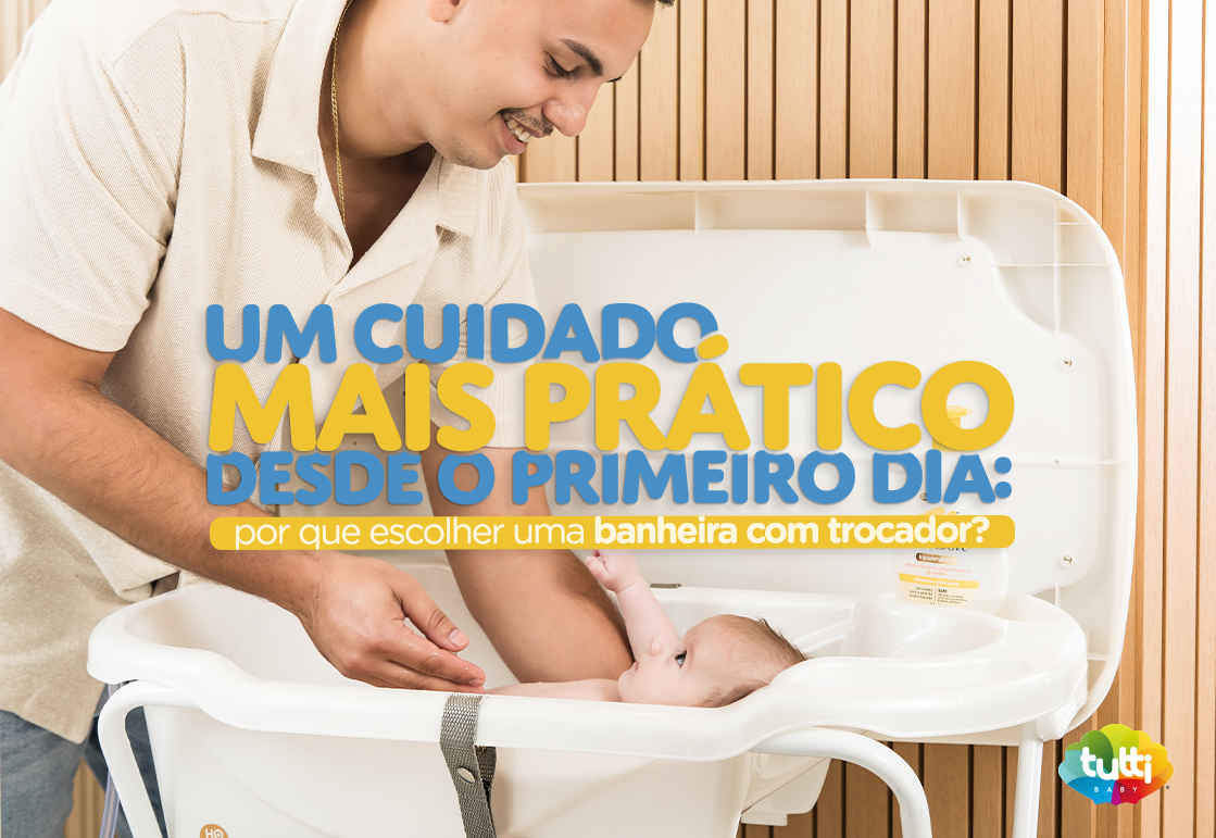 A Tutti Baby oferece duas opções de banheira com trocador que pensam justamente nessa rotina real das famílias.